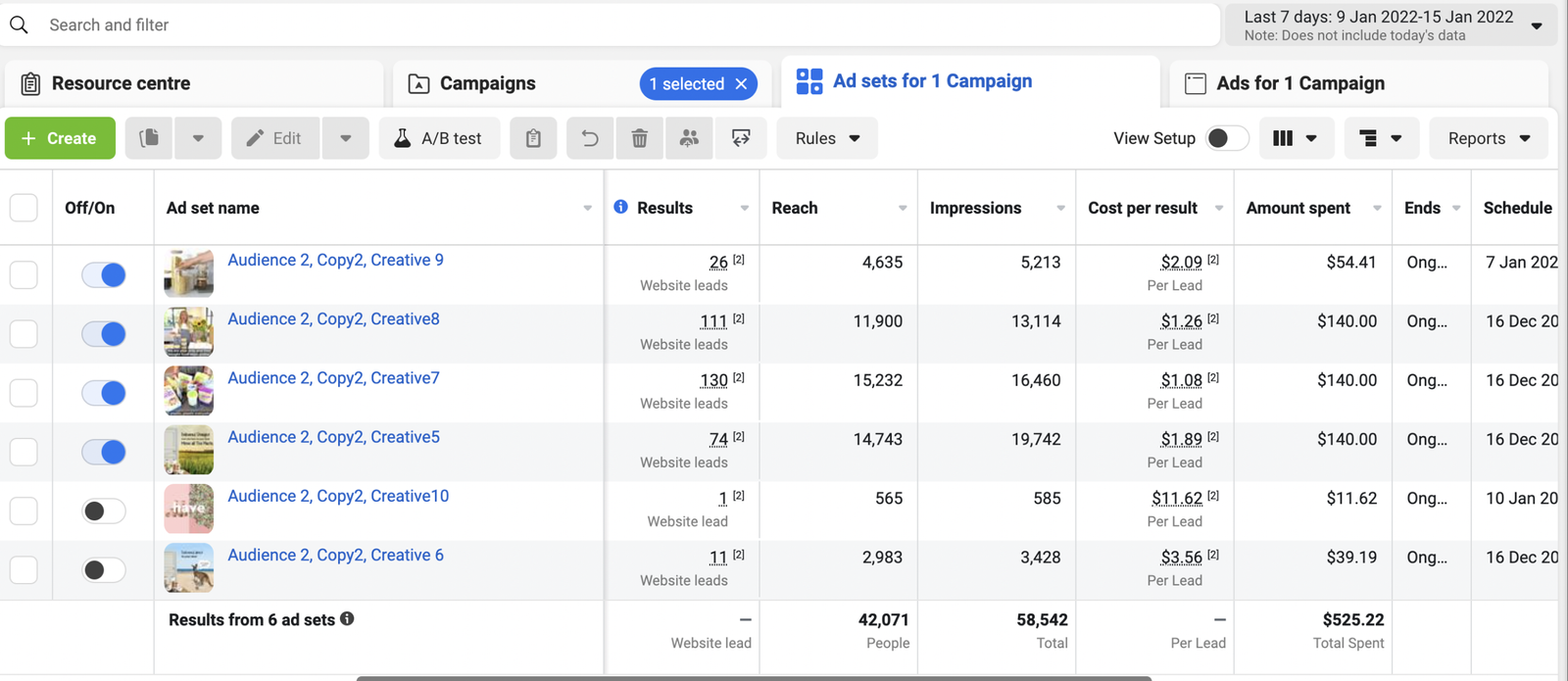 Budgets were actively shifted toward winning combinations of audiences and creatives.